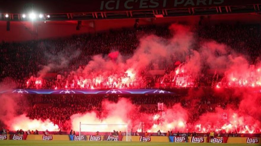 El encuentro, que ganó el equipo español por 2-1, clasificándose para los cuartos de final de la Champions, tuvo que interrumpirse en dos ocasiones por la densa humareda provocada por el encendido de decenas de bengalas.