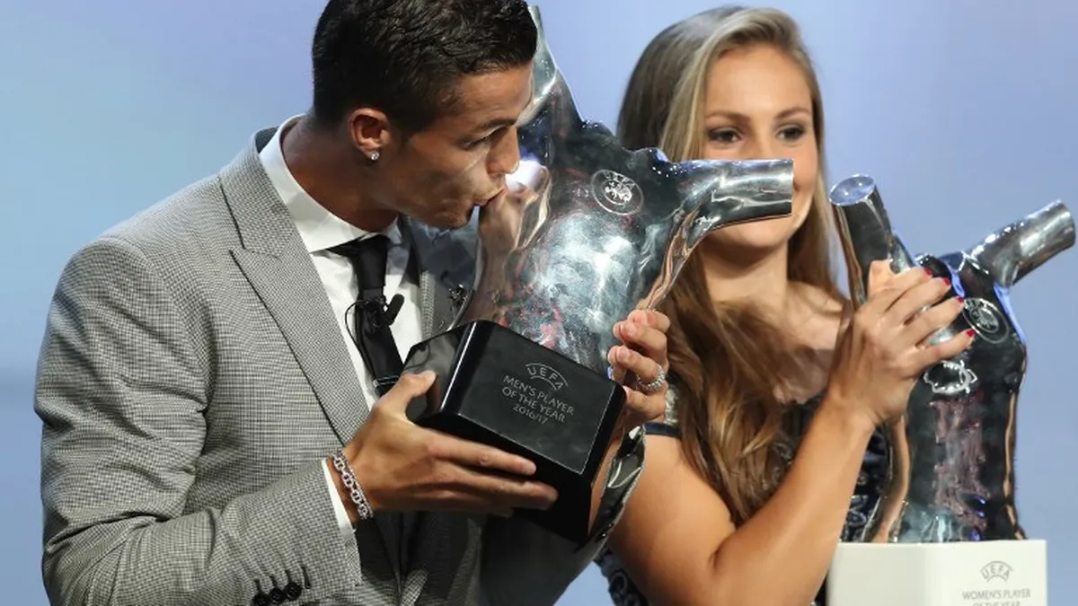 El presidente de la UEFA, Aleksander Ceferin, anunció el nombre de Crstiano como ganador de un premio que el portugués besó en dos ocasiones y que consideró "un honor recoger otra vez" como el año pasado y que también pertenece sus compañeros.