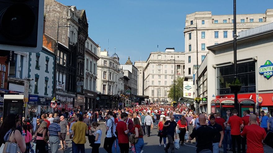 Desde la mañana del sábado, miles de aficionados del Liverpool llegaban a esta ciudad del norte de Inglaterra para vivir el ambiente a distancia, demostrando que es uno de los clubes más populares del país, avalado por sus cinco títulos de campeón de Europa antes del partido de Kiev.