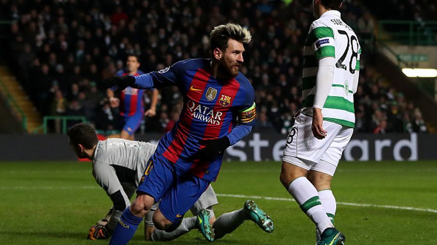 Un doblete del delantero argentino Lionel Messi dió este miércoles la victoria al Barcelona ante un débil Celtic de Glasgow y el liderato del grupo C de la Liga de Campeones, al término de la 5ª jornada.