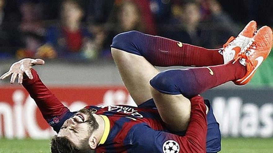 El defensa Gerard Piqué tuvo que ser sustituido del terreno de juego cuando solo habían transcurrido diez minutos de juego del partido de ida de cuartos de final de la Champions frente al Atlético de Madrid, como consecuencia de una desafortunada caida, tras luchar un balón aéreo en un salto con Diego Costa. El jugador sufre una fisura pélvica en el costado derecho, por lo que estará de baja cuatro semanas y se perderá, además de la vuelta de los cuartos de la Champions, la final de la Copa del Rey contra el Real Madrid Texto: Mundodeportivo.com