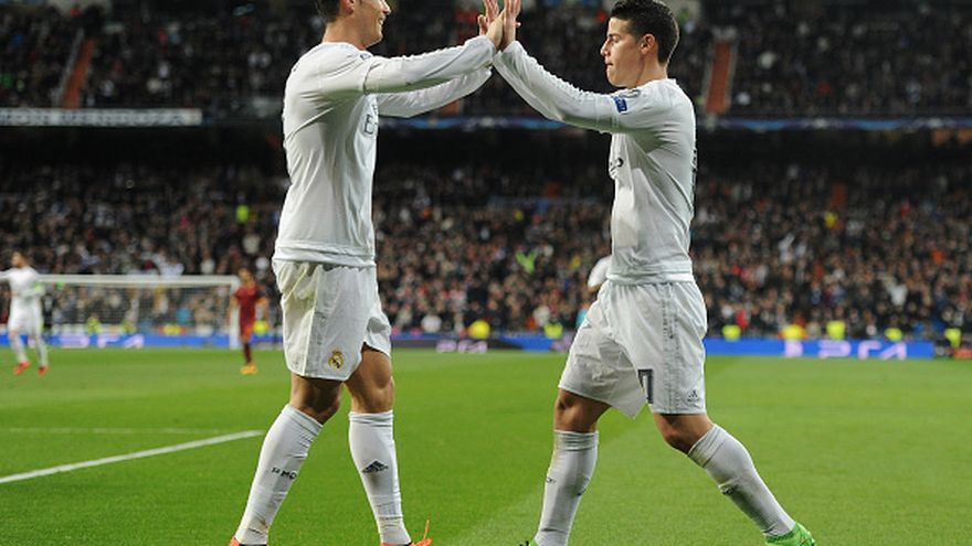 Con goles de Cristiano Ronaldo y James Rodríguez el Real Madrid se clasificó este martes a los cuartos de final de la Champions League, luego de superar 2-0 en el Santiago Bernabéu a la Roma de Italia y romper el maleficio de 29 años sobre clubes de la Serie A.