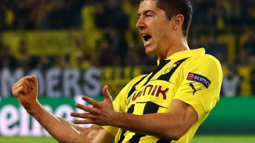 Robert Lewandowski anotó cuatro goles y Borussia Dortmund esculpió un segundo tiempo perfecto para humillar el miércoles 4-1 al Real Madrid y quedar al umbral de una final alemana en la Liga de Campeones. El sensacional ariete polaco marcó a los ocho, 50, 55 y 66 minutos (penal), para dejar al Dortmund con una enorme ventaja de cara al partido de vuelta el próximo martes en el estadio Santiago Bernabéu de Madrid. Cristiano Ronaldo empató transitoriamente a los 43. El Madrid recibió los mismos goles que su archirrival Barcelona el martes, cuando perdió 4-0 en su visita al Bayern Munich. Esa serie se define el próximo miércoles en el Camp Nou. Dortmund, campeón de la Bundesliga las dos últimas temporadas y dotado con una genial camada de jóvenes, arrinconó al Madrid desde el silbatazo inicial, aunque en principio con más vértigo que precisión. La tropa de José Mourinho, en cambio, apostó como siempre al contragolpe, pero sin orden en la salida y con bastantes pelotazos a las nubes. Marco Reus dio el primer aviso del Dortmund apenas a los seis minutos, cuando hizo una diagonal al borde del área, arrastró varias marcas y remató cruzado, aunque el arquero Diego López alcanzó a manotear el balón. Lewandowski no perdió dos minutos después, al empujar a bocajarro un centro desde la banda izquierda de Marcel Schmelzer. Las acciones se nivelaron después del gol y el Madrid empezó a tomarle la mano al encuentro con mayor peso de Cristiano por la banda izquierda. El empate llegó al filo del entretiempo con colaboración de la defensa alemana: el madridista Luka Modric adelantó de taco un saque de banda y Mats Hummels regaló la pelota a Gonzalo Higuaín al tratar de cederla al arquero del Dortmund. El argentino dio un pase a Cristiano, que definió con el arco vacío. Dortmund se reagrupó en el descanso y salió al complemento con los cañones bien apuntados. Lewandowski metió el segundo a los 50, hizo el tercero a los 55, con una excelente jugada individual en la que pisó la pelota dentro del área y la metió al ángulo, y redondeó su póker a los 66 desde el punto de penal.