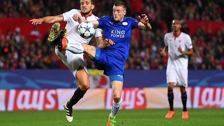 El Sevilla ganó 2-1 al Leicester este miércoles en partido de ida de los octavos de final de la Liga de Campeones dando un pequeño paso hacia la siguiente fase de la máxima competición continental de clubes.