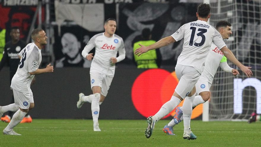 El Nápoles golpeó primero en su eliminatoria de octavos de final de Liga de Campeones ganando este martes 2-0 al Eintracht alemán en Fráncfort, en un partido en que los italianos hicieron gala de mayor oficio mientras que los alemanes jugaron media hora con un hombre menos.