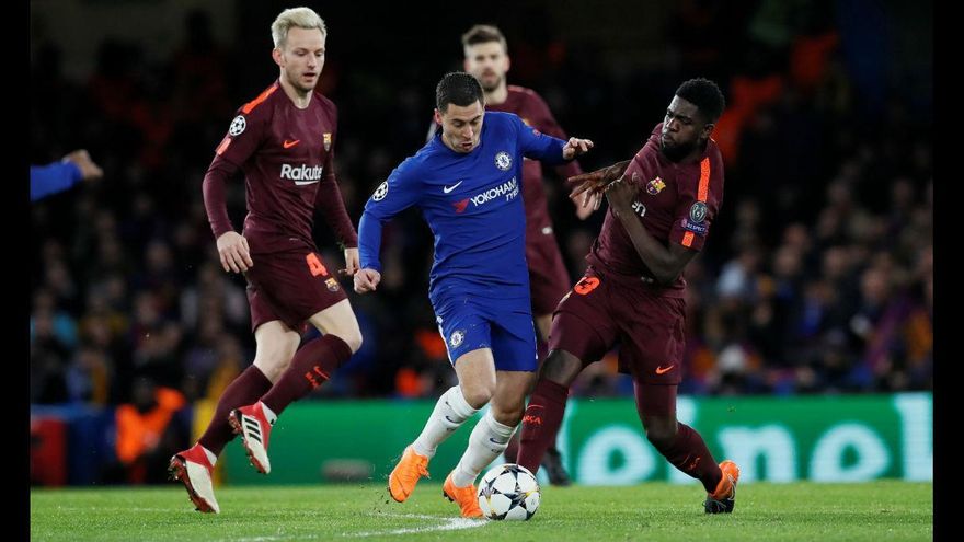 Un disparo cruzado del belga Eden Hazard (minuto 6) para el Chelsea y un remate de cabeza del brasileño Paulinho para el Barça (17) fueron las primeras ocasiones en un partido en el que los londinenses esperaban muy atrás, priorizando la solidez defensiva ante el temible ataque azulgrana.