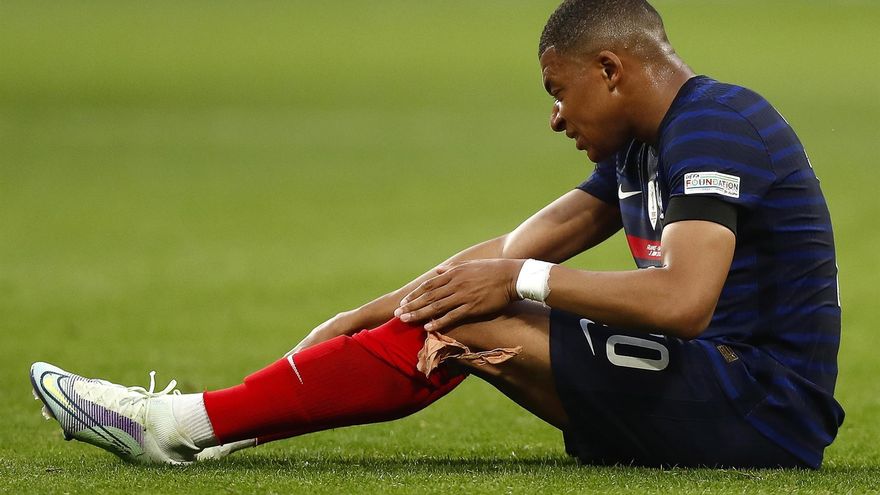 El médico de los Bleus examinó la rodilla izquierda del delantero antes de ayudarlo a incorporarse. Mbappé se retiró al vestuario por su propio pie.