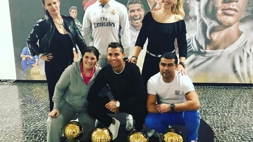 La imagen, subida por su hermana Katia a las redes sociales, muestra al jugador del Real Madrid y a los suyos en el museo dedicado a su persona. La figura de cera que reproduce a tamaño real a CR7 y los cuatro Balones de Oro que ha conseguido destacan en una estampa a buen seguro muy especial para el atacante.