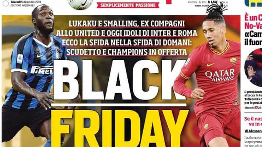 Los clubes italianos de la Serie A tildaron este jueves de "inaceptable" y "terrible" el titular 'Black Friday' en la portada del periódico deportivo Corriere dello Sport, dedicado a los jugadores Romelu Lukaku y Chris Smalling.