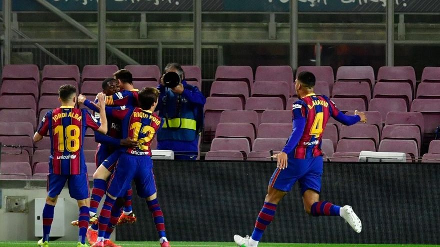 Tras un centro desde la derecha del holandés Frenkie de Jong, el uruguayo Ronald Araújo, con la cabeza, dejó la pelota en el segundo palo para que Dembélé anotara de volea el tanto de decidió el partido.