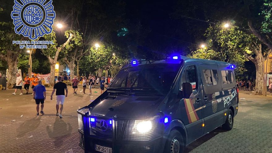 En la noche del martes al miércoles se "produjo una pelea multitudinaria frente a la catedral de Sevilla", en la que dos centenares de aficionados del Eintracht "estaban agrediendo a seguidores del Glasgow Rangers", afirmó la policía en un comunicado.