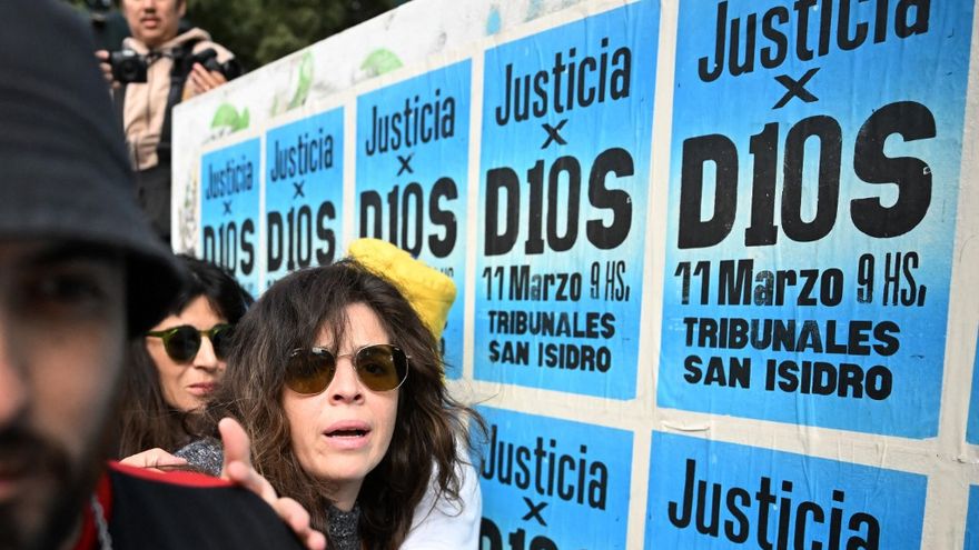 Decenas de seguidores de Maradona se congregaron este martes a las puertas del tribunal con banderas argentinas y afiches con el rostro del ídolo deportivo al grito de "¡justicia para el dios del fútbol! ¡que paguen todos!".