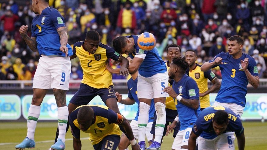 Sin el lesionado Neymar, el máximo goleador de la verdeamarela con 7 tantos (dos menos que el boliviano Marcelo Martins, líder de la competición), Brasil tuvo jerarquía y se adueñó del esférico en un áspero cotejo, en el que el juez -cuyo papel fue criticado por Ecuador- también debió amonestar a los brasileños Raphinha y Éder Militão, además de los ecuatorianos Valencia y Moisés Caicedo.