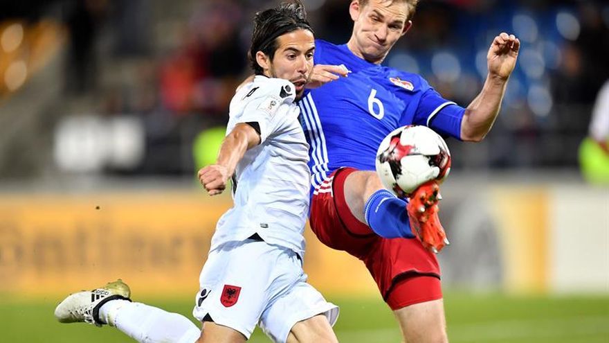 La selección de Albania logró su segunda victoria en la fase de grupos del Mundial de Rusia al ganar 0-2 a la de Liechtenstein y se situó en la primera posición del grupo de España e Italia.