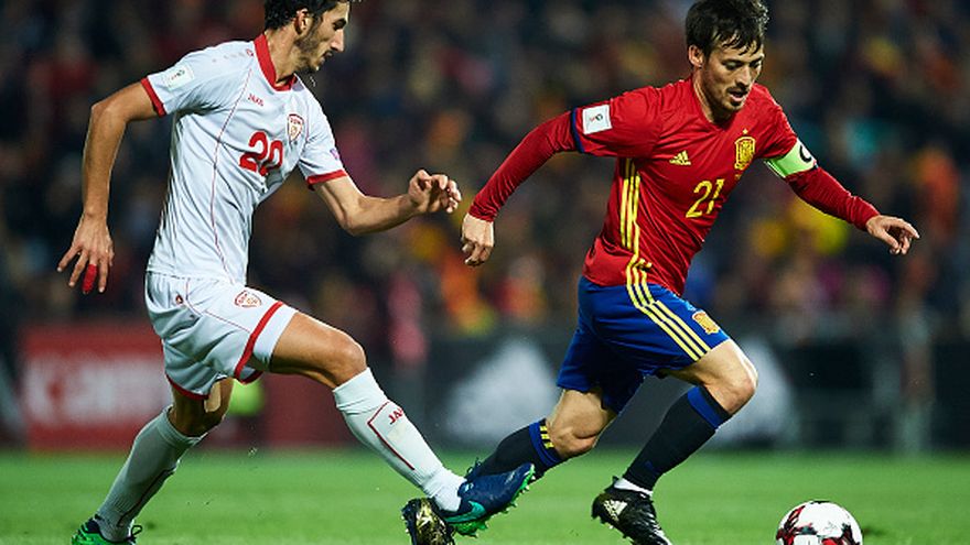 La selección española suplió con eficacia las numerosas bajas que sufría ante Macedonia, a la que goleó bajo el influjo de David Silva (4-0), con una conexión letal con Vitolo, que empujó a una mejoría de imagen en una gran segunda parte, para mantener el liderato del Grupo G, que queda en un pulso con Italia.