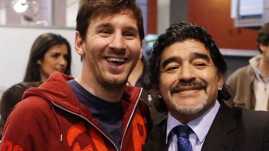 Messi acompañó su mensaje de condolencias con dos fotos en una de las cuales se les puede ver junto a un sonriente Maradona posando para las cámaras.
