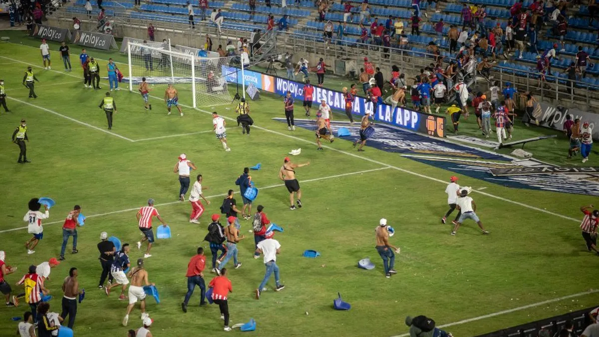 En agosto de 2021, seguidores de Santa Fe y Atlético Nacional invadieron la cancha de El Campín de Bogotá en el primer partido con público después de más de año y medio de prohibición debido a la pandemia.