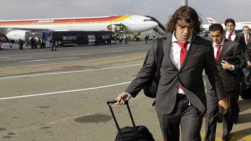 España aterrizó el viernes en Sudáfrica con la moral alta por una impecable racha de juego y resultados, que, sin embargo, choca con los reiterados llamamientos a la calma de los jugadores, que huyen de la euforia y el favoritismo. La vigente campeona de Europa fue el último de los 32 equipos del Mundial en llegar a Sudáfrica, después de una concentración de dos semanas realizada entre Madrid y Austria. España instalará su cuartel general en Potchefstroom, una pequeña localidad universitaria a 130 kilómetros de Johannesburgo. La "Roja" ganó los tres partidos de preparación, pero sobre todo llamó la atención su contundente victoria por 6-0 frente a Polonia en el último amistoso disputado el pasado martes. Durante estas semanas, el técnico Vicente del Bosque aprovechó para ensayar variantes tácticas, probar futbolistas y, sobre todo, recuperar a los lesionados. El delantero Fernando Torres, que anotó un gol en su reaparición contra Polonia, y el volante Cesc Fábregas disputaron varios minutos en los amistosos y parecen llegar en buena forma a Sudáfrica después de casi dos meses apartados de los terrenos de juego. No obstante, Torres, operado del menisco en abril, es duda para el debut de la selección española frente a Suiza el próximo miércoles en Durban y podría jugar en función de las circunstancias. Al igual que el volante Andrés Iniesta, que sufre un edema muscular. España se presenta en el Mundial con el cartel de favorito. Acumula una inmaculada racha de 11 victorias consecutivas, un esquema de fútbol ofensivo y de toque mecanizado y prácticamente la misma plantilla que ganó la Eurocopa en 2008. Además de Torres, Fábregas o Iniesta, el equipo cuenta con jugadores como Xavi Hernández, Gerard Piqué, David Silva, Sergio Ramos o el guardameta Iker Casillas. Pero la historia de la selección española en los mundiales es más bien pobre. Su mejor resultado, un cuarto puesto, se remonta a Brasil 1950. Desde entonces, jamás ha podido superar la barrera de cuartos. Quizá por el peso de la historia o sólo por aliviar la presión, los jugadores más importantes del vestuario y el cuerpo técnico se muestran cautos y prefieren pensar únicamente en la fase de grupos, en la que, además de Suiza, se medirán a Honduras y Chile. "Lo principal es ir al Mundial con humildad. Cuando todo el mundo te concede el papel de favorito significa algo", dijo Torres tras la victoria contra Polonia. "Es cierto que nos lo hemos ganado, que sentimos que podemos ganar a cualquier rival, pero dentro de esa seguridad debemos estar alerta en todos los partidos". "Estamos a tono, preparados para afrontar el reto del Mundial", añadió su compañero de ataque David Villa.