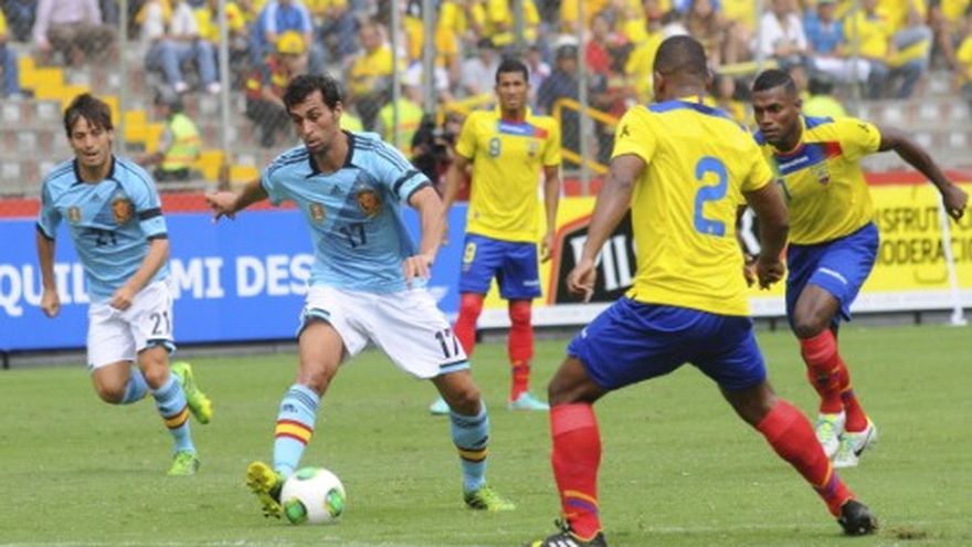 Con goles de Álvaro Negredo y Santi Cazorla, la selección española mostró un juego vistoso y práctico en su victoria el miércoles por 2-0 sobre Ecuador en un partido amistoso. El cotejo sirvió a las dos selecciones para afinar sus estilos. En el caso de Ecuador con miras a las eliminatorias mundialistas, mientras que para España significó el principio de las pruebas de nuevos jugadores para el Mundial de Brasil el próximo año. A los 11 minutos el partido fue suspendido momentáneamente, y tanto el público como los jugadores guardaron un minuto de silencio en homenaje a Christian Benítez, delantero ecuatoriano fallecido a finales de julio en Catar debido a problemas cardíacos. España anotó el primer tanto a los 24 minutos con suave toque de Negredo, quien aprovechó un mal rechazo de la zaga ecuatoriana luego de una vistosa jugada de varios futbolistas del equipo visitante y de una atajada del portero ecuatoriano Máximo Banguera. El segundo gol llegó a los 62 minutos tras un contraataque de los españoles que llegó a los pies de Cristian Tello, quien de taco habilitó a Santi Cazorla, el cual remató bajo y esquinado para vencer el arco ecuatoriano. Ese tanto llegó cuando mejor jugaba el combinado de Ecuador. Desde los primeros minutos de juego los españoles impusieron ritmo y un fútbol pausado, que en los tramos finales era capaz de generar notables cambios de ritmo que ponían en aprietos a la defensa de los locales. Sin embargo, al final del primer tiempo Ecuador se animó a mostrar un juego más profundo y en el segundo presionó constantemente el arco de los españoles, que sin embargo no dejaron de llevar riesgo a la portería ecuatoriana. Los juveniles protagonistas del título europeo sub 21, Cristian Tello e Iñigo Martínez, tuvieron destacada participación en el cuadro ibérico. El encuentro se disputó bajo la conducción del árbitro colombiano Wilmar Roldán en el estadio del Barcelona, de Guayaquil.