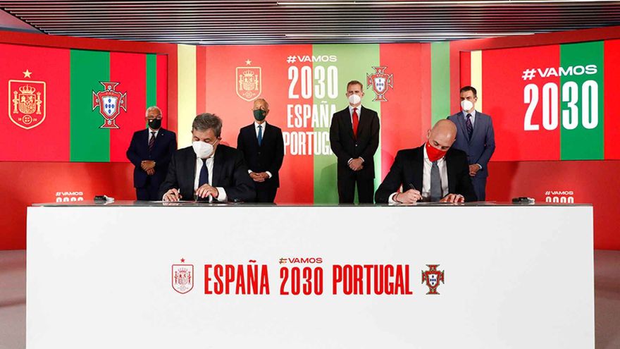 España y Portugal oficializaron su candidatura conjunta para organizar el Mundial de 2030 el 5 de junio de 2021 antes de un partido amistoso entre ambos conjuntos en el estadio Metropolitano de Madrid.