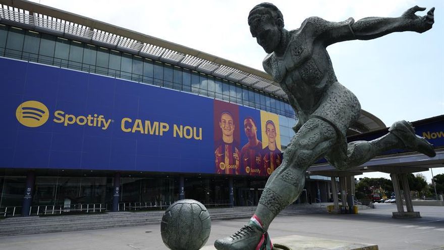 Así, el estadio barcelonista ha amanecido este viernes con un mural "con los jugadores de los primeros equipos femenino y masculino de fútbol Pedri, María León, Ansu Fati, Alexia Putellas, Aubameyang y Aitana Bonmatí, junto con el nombre de Spotify Camp Nou en el centro".