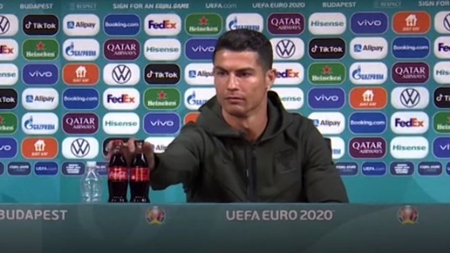 Una invitación a dejar las bebidas gaseosas fue la impresión que dejó el astro del fútbol Cristiano Ronaldo. Esto ocurrió el pasado lunes por un gesto que hizo el futbolista en una conferencia de prensa previa del partido entre Portugal y Hungría en Budapest.