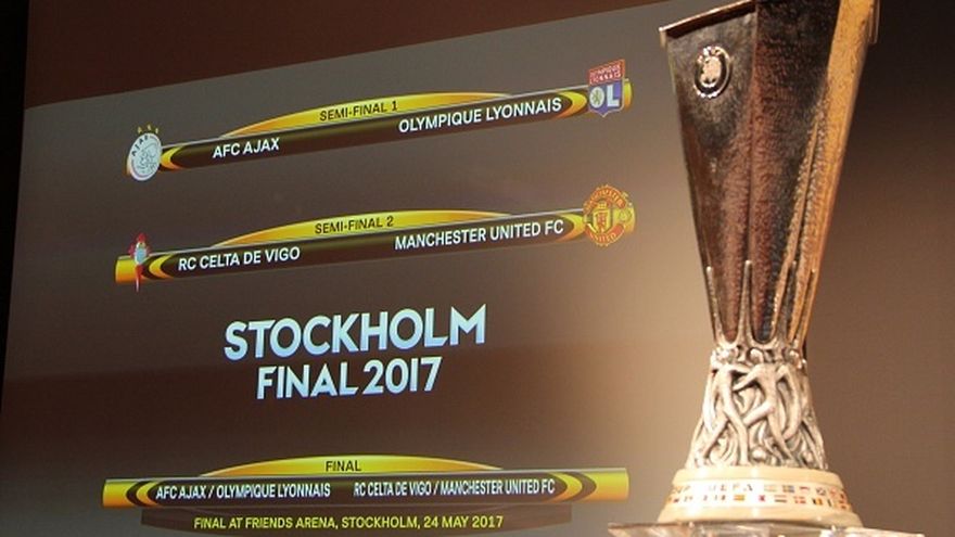 Ajax y Celta serán locales en los partidos de ida, el 3 y 4 de mayo, mientras que la vuelta en los terrenos del Mánchester United y Lyon está fijada para el 11 del mismo mes, antes de la final, programada el 24 en Estocolmo.