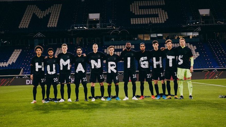 Antes del partido, ganado por 3-0 a Islandia, los jugadores de la selección alemana enviaron un mensaje en favor de los Derechos Humanos en este inicio del camino hacia el Mundial de Catar.
