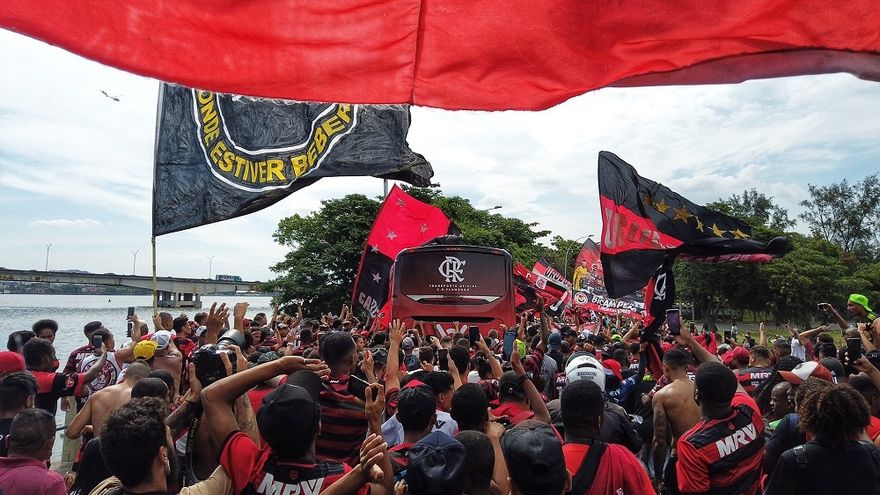 La hinchada se dividió entre el Ninho do Urubú (nido del buitre), el centro de entrenamiento del Flamengo situado en la zona norte de Río, y los alrededores del aeropuerto de Galeao, donde ondearon sus banderas, encendieron bengalas y dedicaron cánticos de apoyo a la plantilla.