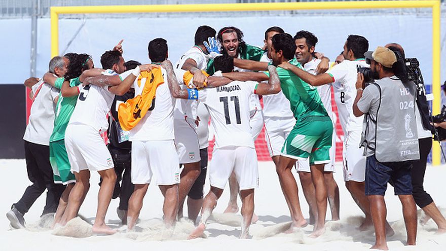 Jugadores de Irán celebran el tercer lugar obtenido en el Mundial de Fútbol Playa Bahamas 2017 / Getty Images