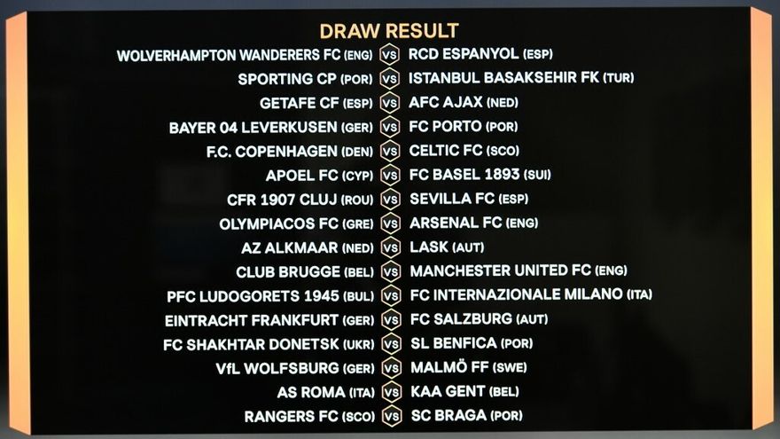 Más suerte tuvieron el Sevilla, cinco veces campeón de la segunda competición continental, que jugará con el Cluj rumano, y el Espanyol, colista en España pero notable en Europa, que se medirá al Wolverhampton inglés.
