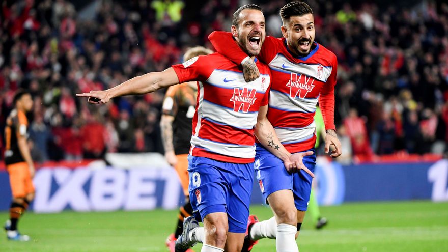 El Granada se convirtió este martes en el primer semifinalista de la Copa del Rey tras ganar 2-1 al Valencia, vigente campeón de la competición, con un doblete de Roberto Soldado, en el partido de cuartos de final del torneo del KO.