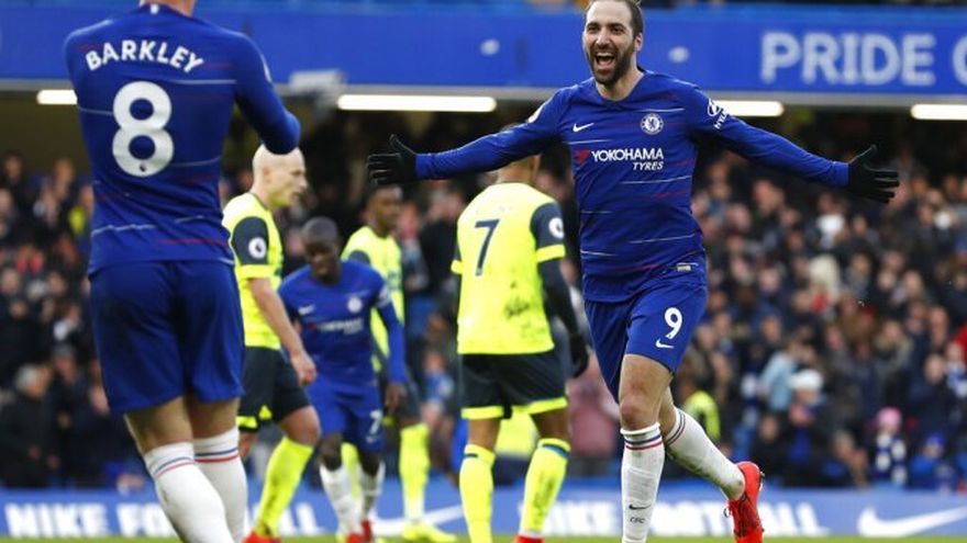 Un doblete del argentino Gonzalo Higuaín, otro del belga Eden Hazard y un gol de David Luiz rubricaron la resurrección en la Premier del Chelsea, que se reencontró con la victoria con una goleada ante el Huddersfield (5-0) y regresó a los puestos de Liga de Campeones.