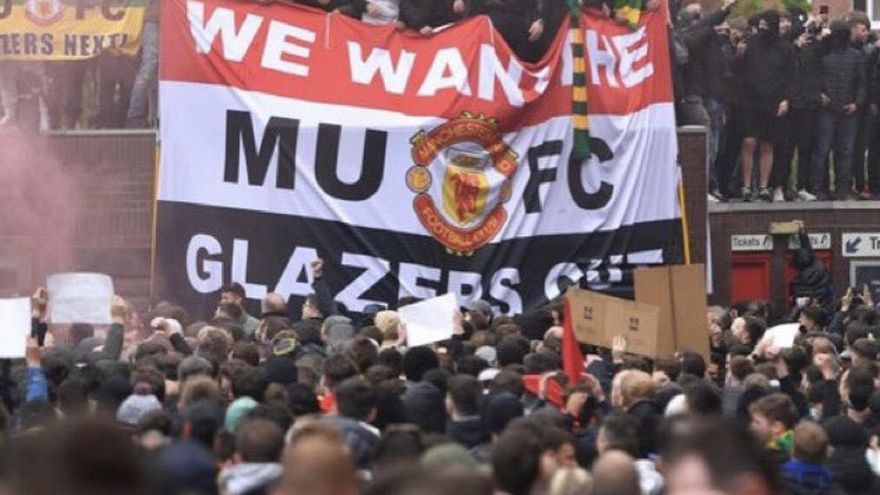 "¡Glazer fuera1", "Amad al United. Odiad a los Glazers!", "¡Unidos (United) contra los Glazers!". Estos fueron algunos de los eslóganes exhibidos por los aficionados contra la multimillonaria familia estadounidense, también con cánticos groseros hacia los propietarios de la entidad.