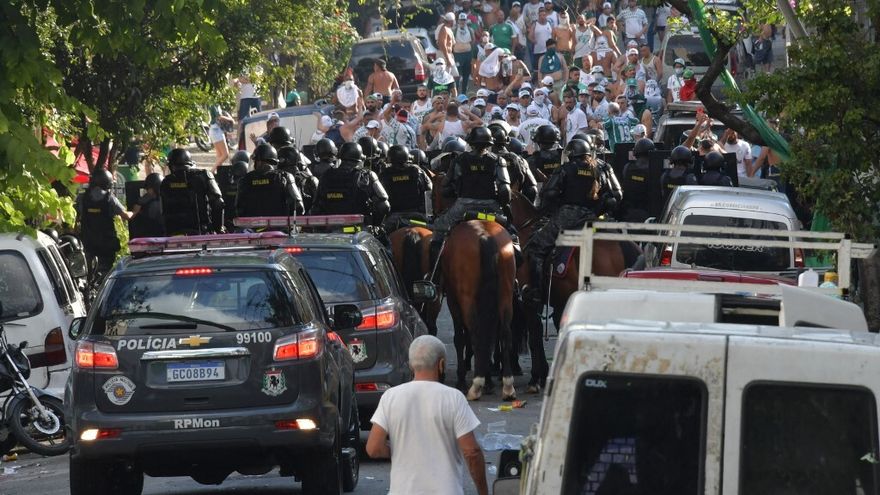 La policía montada y otros agentes dispersaron a los presentes "con bombas de estruendo y balas de goma", en medio de una lluvia de objetos y piedras, detalló el sitio de noticias G1.
