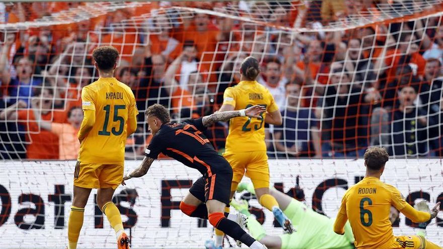 Noa Lang (17) y Cody Gakpo (23) pusieron por delante en el marcador a los Oranje, pero poco después Brennan Johnson redujo diferencias para los galeses (26), que creyeron haber salvado un empate cuando anotó Gareth Bale de penal en el descuento (90+2), pero el equipo de Louis van Gaal aún tuvo tiempo de llevarse la victoria con otro tanto desde los once metros transformado por Memphis Depay (90+3).