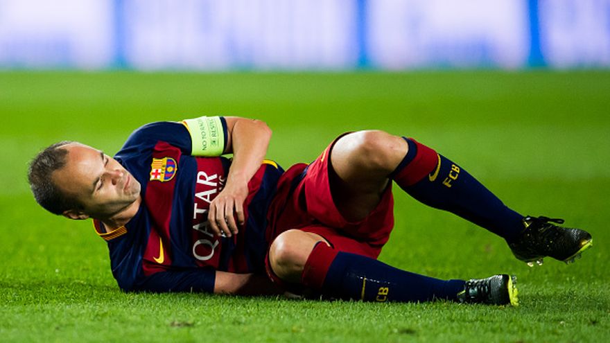El centrocampista del Barcelona Andrés Iniesta, que tuvo que salir del campo por lesión a la hora de juego este martes en la victoria 2-1 del Barcelona sobre el Bayer Leverkusen, sufre una lesión muscular en el muslo derecho, anunció el club español.
