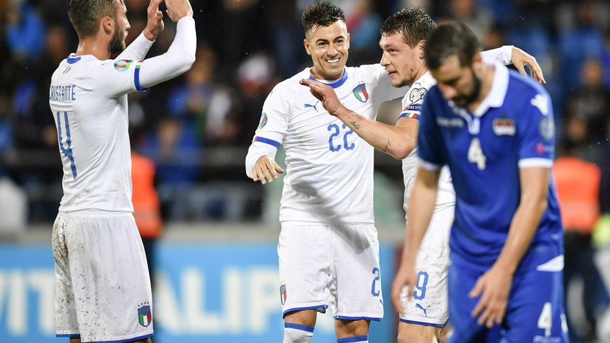 La selección de Italia, ya matemáticamente clasificada como primera de grupo para la Eurocopa de 2020, se impuso por 5-0 este martes a la de Liechtenstein y siguió con el pleno de puntos tras ocho jornadas de la fase de clasificación al torneo continental.