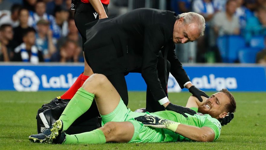 El portero colchonero aguantó unos minutos más sobre el césped, pero en el 83 tuvo que dejar su lugar al croata Ivo Grbic.
