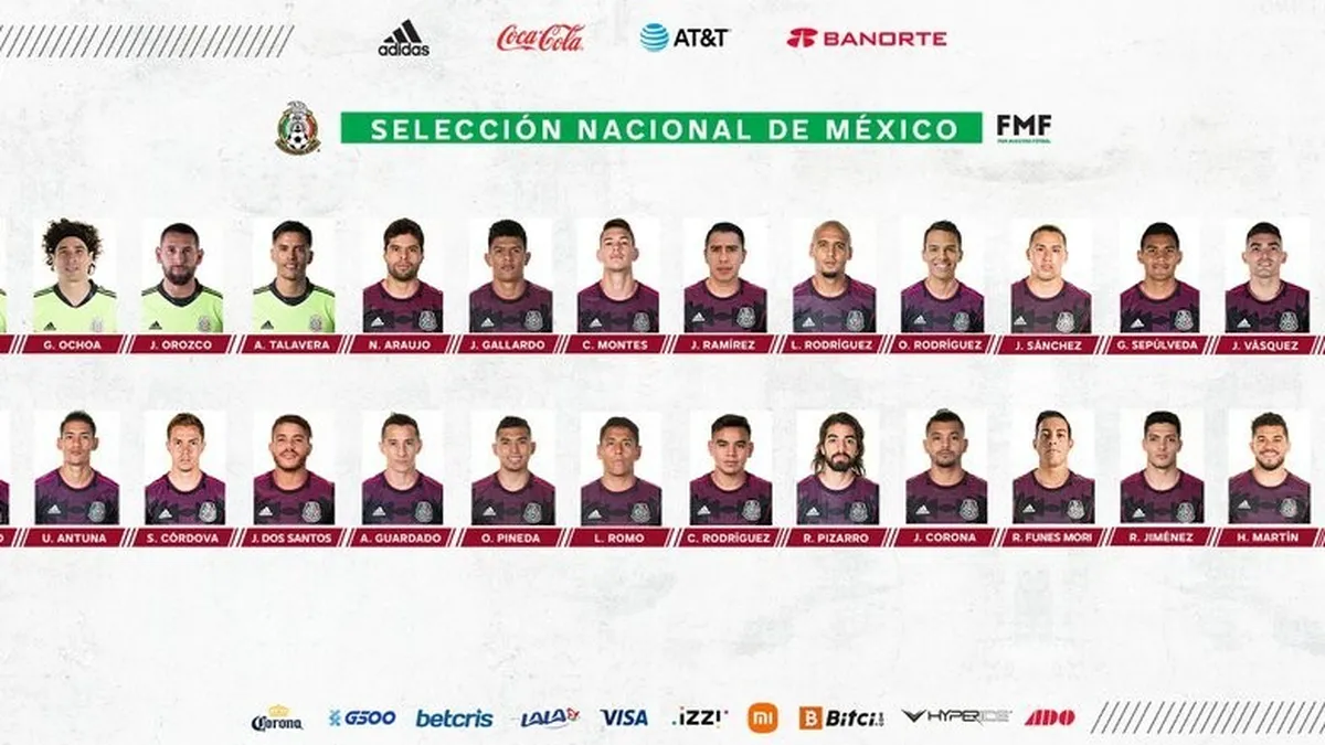 El 'Tata' Martino citó también a 11 de los jugadores que ganaron medalla de bronce en los Juegos Olímpicos de Tokio-2020: el portero Guillermo Ochoa; los defensas César Montes, Jorge Sánchez y Johan Vásquez; los medios Sebastián Córdova, Carlos Rodríguez y Luis Romo, y los delanteros Roberto Alvarado, Uriel Antuna, Henry Martín y Alexis Vega.