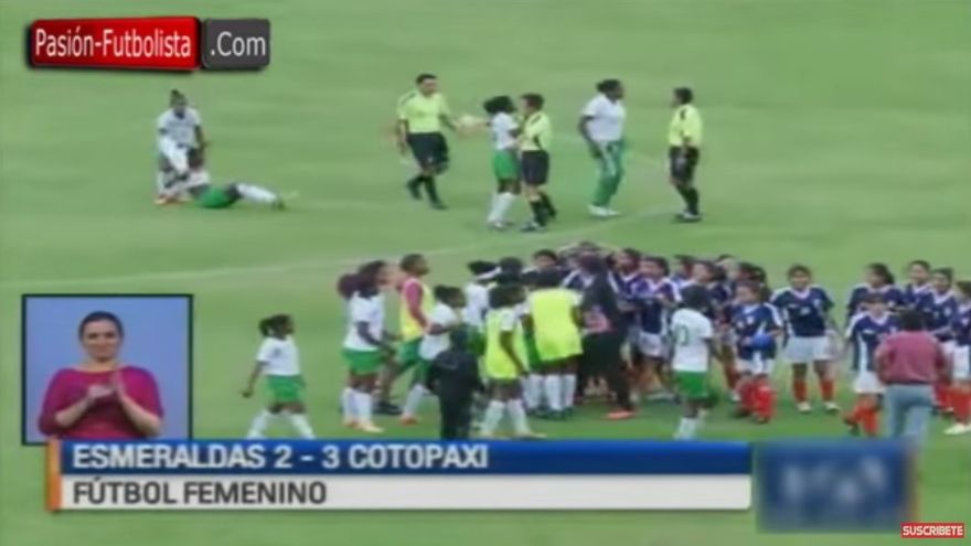 El partido (3-2) se desarrollaba en el estadio Olímpico de Atahualpa sin mayores novedades, pero con una victoria final para Cotopaxi tras una espectacular remontada. Fue entonces cuando las jugadoras del Esmeraldas se enfadaron y buscaron a las rivales con intención de agredirlas. La cosa empezó a ir a más y, cuando los árbitros intentaron poner calma y atajar la tangana, éstos fueron golpeados y recibieron puñetazos y patadas de las jóvenes jugadoras. En el túnel de vestuarios siguió la pelea, como puede verse en este video de ‘Teleamazonas’. Al final, las chicas recogieron botellas de agua y las lanzaron contra el público en las gradas.