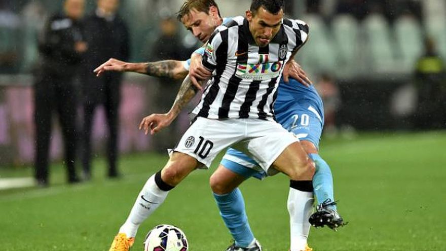 Juventus ganó el sábado 2-0 a la Lazio con un gol de Carlos Tevez y dio otro paso para adjudicarse su cuarto scudetto consecutivo.
