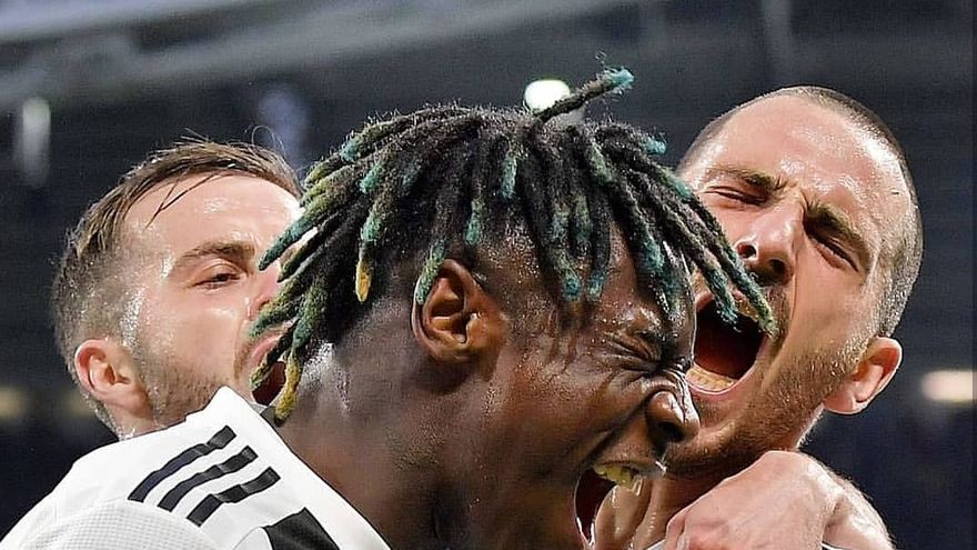 Moise Kean, talento de 19 años del Juventus Turín y de la selección italiana, firmó este sábado su quinto gol consecutivo y hundió al Milan (2-1), lo que permite al conjunto turinés acariciar su octavo título liguero seguido.