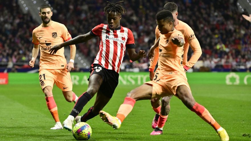 Nico Williams (c) en un partido ante el Atlético de Madrid / AFP