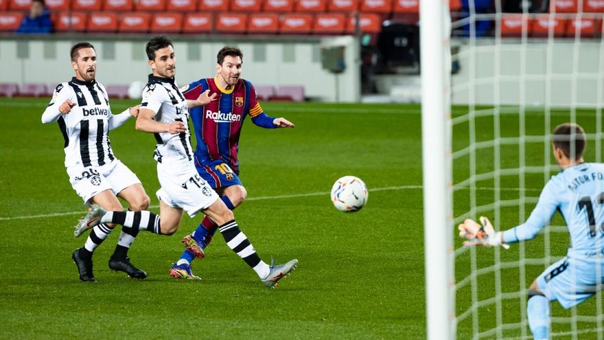 Un gol de Leo Messi dio el triunfo al Barcelona ante el Levante (1-0) en el Camp Nou en la jornada 13 de Liga.