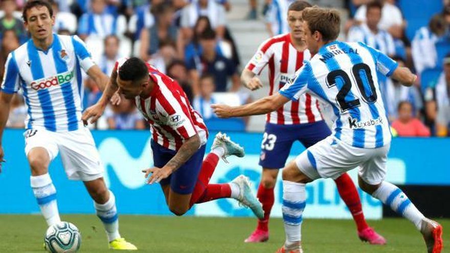 En un partido muy rápido, el Atlético sufrió en la primera parte ante una Real Sociedad que presionaba arriba y obligó a trabajar a Jan Oblak, que tendría que retirarse en el segundo tiempo tras sufrir un duro balonazo en el segundo tanto local.