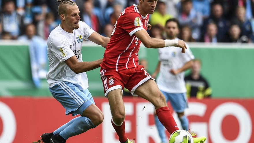 Berlín/El Bayern Múnich goleó este sábado al Chemnitz (tercera división) por 5-0 en la primera ronda de la Copa alemana mientras que el vigente campeón, el Borussia Dortmund, hizo lo propio (4-0) ante el Rielasingen-Arlen (sexta categoría).