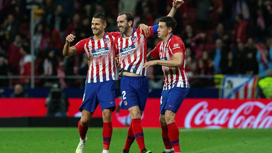 Diego Godín abrió el marcador de cabeza (76) y Antoine Griezmann hizo el 2-0 en el descuento (90+4) dando una victoria que coloca a los rojiblancos provisionalmente a siete puntos de los azulgranas, a la espera de lo que hagan frente al Villarreal (17º) en el último partido del día.