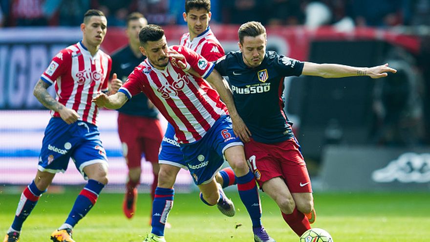El Atlético se había fijado como objetivo ganar en Asturias para ponerse a cinco unidades y presionar a los azulgranas, y para ello comenzó bien, adelantándose en el marcador en el minuto 29 por medio del francés Antoine Griezmann.