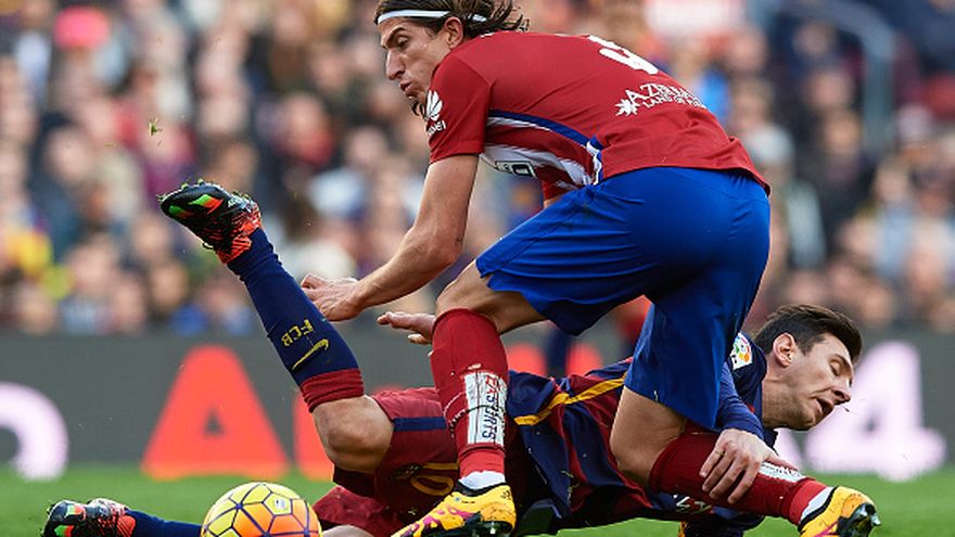Filipe Luis, lateral izquierdo brasileño del Atlético de Madrid fue sancionado este miércoles con una suspensión de tres partidos por su peligrosa entrada a Lionel Messi, el sábado en la derrota 2-1 de los Colchoneros ante el Barcelona.